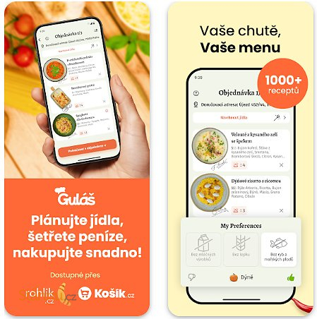 Aplikace automaticky připraví nákupní seznam a propojí jej s online obchody Rohlik.cz nebo Košík.cz, kde můžeš potraviny rovnou objednat. Guláš myslí i na udržitelnost – pomáhá snižovat plýtvání, nabízí sezónní recepty a provede tě vařením pomocí přehledných video návodů.