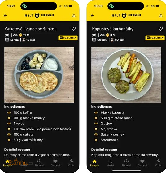 Naleznete zde mnoho chutných a zdravých receptů pro děti od 8 měsíců, týdenní plánovač jídel, možnost poznámek či označení oblíbených receptů a praktické rozdělení jídel do kategorií.